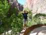 Der Shuttle Bus fährt insgesamt 9 Stationen an. Unser Ziel war die letzte Station, der Temple of Sinawawa. Auf dem Weg dorthin geht es immer am North Fork Virgin River entlang, vorbei an riesigen Felswänden. Zuerst wanderten wir, wie sehr viele weitere Touristen auch, auf dem Riverside Walk. Wir sahen wieder viele Erdhörnchen und auch Rehe, die sich durch die Besucher nicht stören ließen. Am Ende des Walks mussten wir im teileweise Hüfthohen Fluss weiter. Es machte uns sehr viel Spaß mit den Turnschuhen durchs Wasser zu waten und über Steine zu kraxeln. Der Spaß wurde noch mit bis 600 m hohen Sandsteinwänden, den Zion Canyon Narrows, deren Abstand stellenweise auf ein paar Meter zusammenschrumpft, belohnt. Nach ca.1 Stunde im Wasser kehrten wir um und kraxelten wieder zurück durchs Wasser.