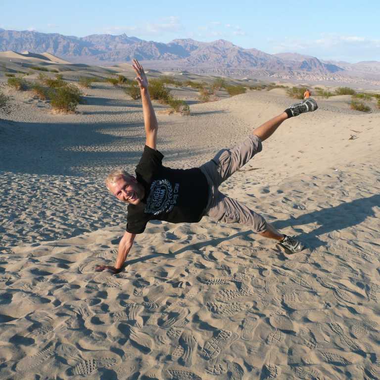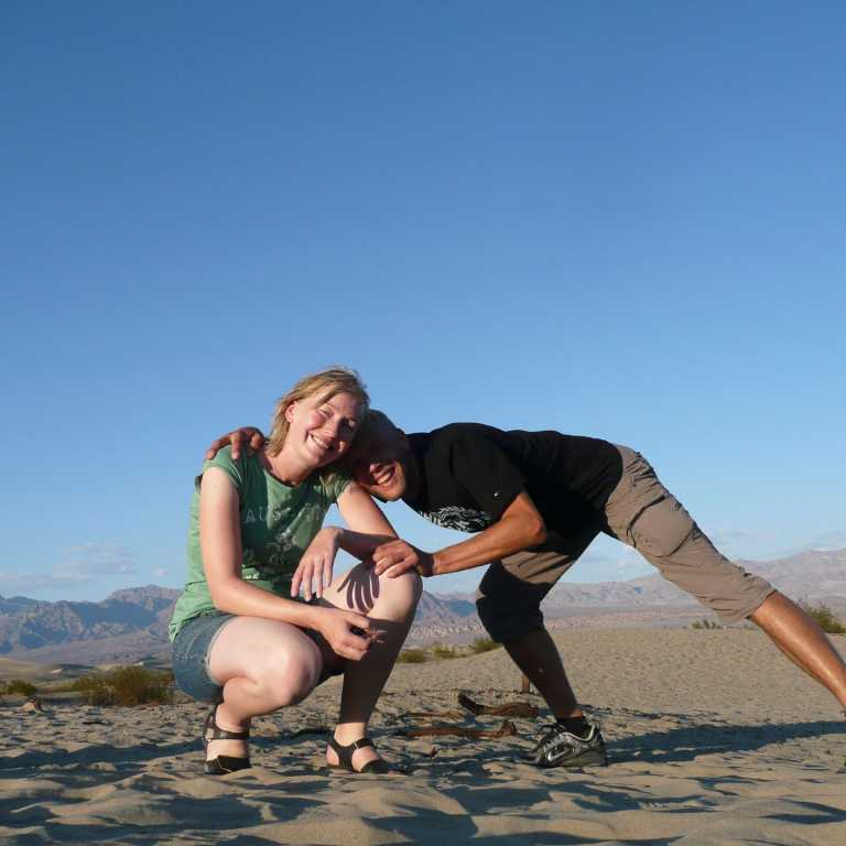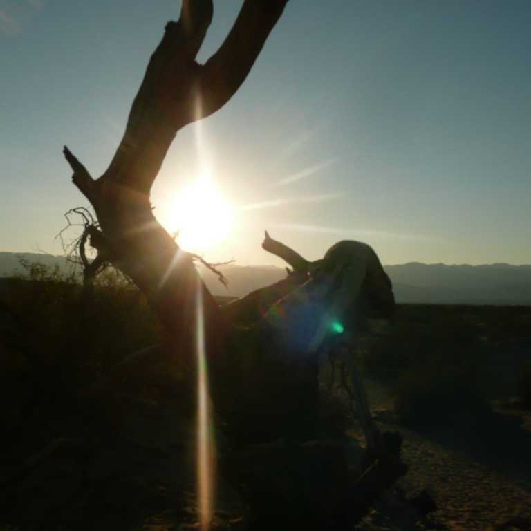 Weiter nördlich erreichten wir die Oase Furnance Creek, wo wir uns ein Eis und kalte Getränke genehmigten. An der nächsten Kreuzung bogen wir in die Straße 190 westlich ab und hielten dann am Aussichtspunkt zu den Mesquite Flat Dunes. Die weithin sichtbaren Wanderdünen erreichen eine Höhe von bis zu 30 Metern. Wir marschierten natürlich ein wenig in den Dünen, wo wir wieder herrliche Fotos machen konnten. Es lebe die Digitalfotografie. Da es schon kurz vor Sonnenuntergang war, verließen wir das Tal des Todes am Westeingang in Panamint Springs und fuhren zuerst weiter nach Westen, wo wir einen herrlichen Sonnenuntergang in den Bergen beobachten konnten. Auf dem Highway 395 ging es dann weiter nach Süden bis wir um 21 Uhr die größere Stadt Ridgecrest erreichten, wo wir am Ortseingang auch gleich ein Motel für 75 Dollar bekamen. Beim Pizzahut gab es noch eine deftige Pizza, bevor wir unter die Dusche und dann ins Bett gingen.