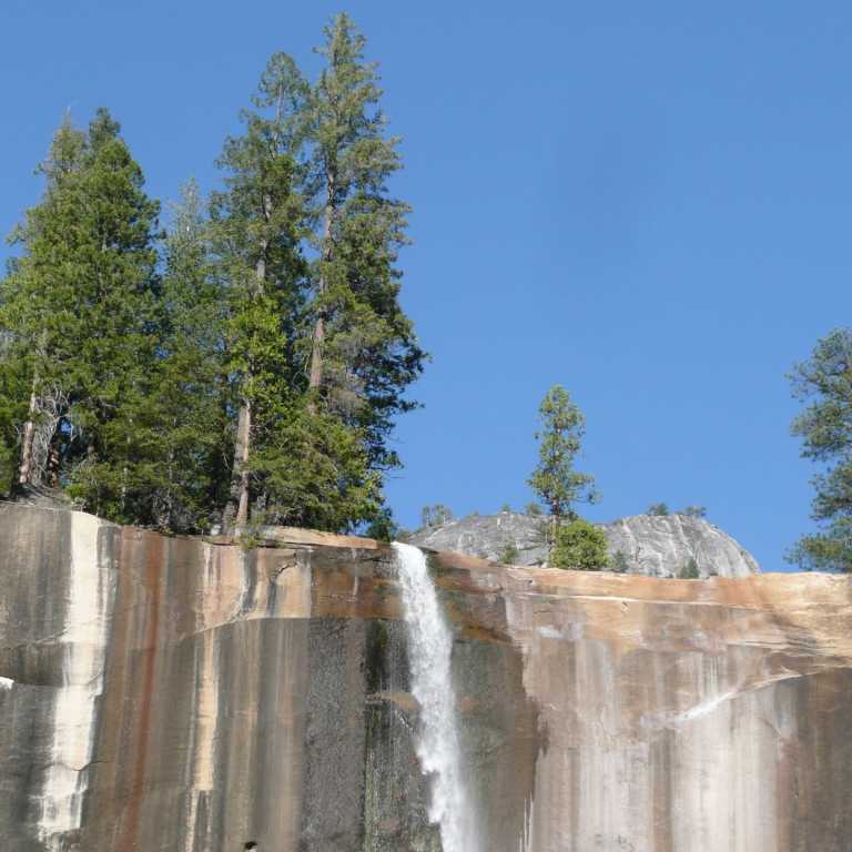 Als nächstes fuhren wir in das wunderschöne, grüne Yosemite Valley. Am Ende des Tals parkten wir unser Auto und starteten den nächsten Trail. Unser Ziel waren die Vernal Falls, wieder ca. 2,5 km und 300 Hm entfernt. Die Wasserfälle lagen idyllisch vor uns und wir konnten herrliche Fotos mit einem Regenbogen, der davor entstand, machen.
