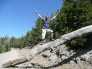 Über einen breiten Wanderweg ging es gemütlich nach oben. Wir hatten eine herrliche Aussicht über ganz Yellowstone. Nach schon knapp einer Stunde standen wir auch schon auf dem Gipfel meines 14. Dreitausenders. Eine Feuerwachstation incl. Ranger, der den Yellowstone NP überwacht, steht auf dem Gipfel. Die Aussicht über ganz Yellowstone war grandios. Nach einer Pause stiegen wir wieder ein Stück abwärts, wo ich Brigitte noch auf einen Seitengipfel führte. Hier setzten wir uns auf einen Stein und genossen die romantische Zweisamkeit und die herrliche Aussicht auf den gesamten Nationalpark. Für mich die Gelegenheit auf über 3000 m Brigitte einen Antrag zu machen, den sie freudestrahlend und überrascht natürlich annahm. Glücklich saßen wir noch einige Zeit auf "unserem" Stein, bevor wir weiter abstiegen.