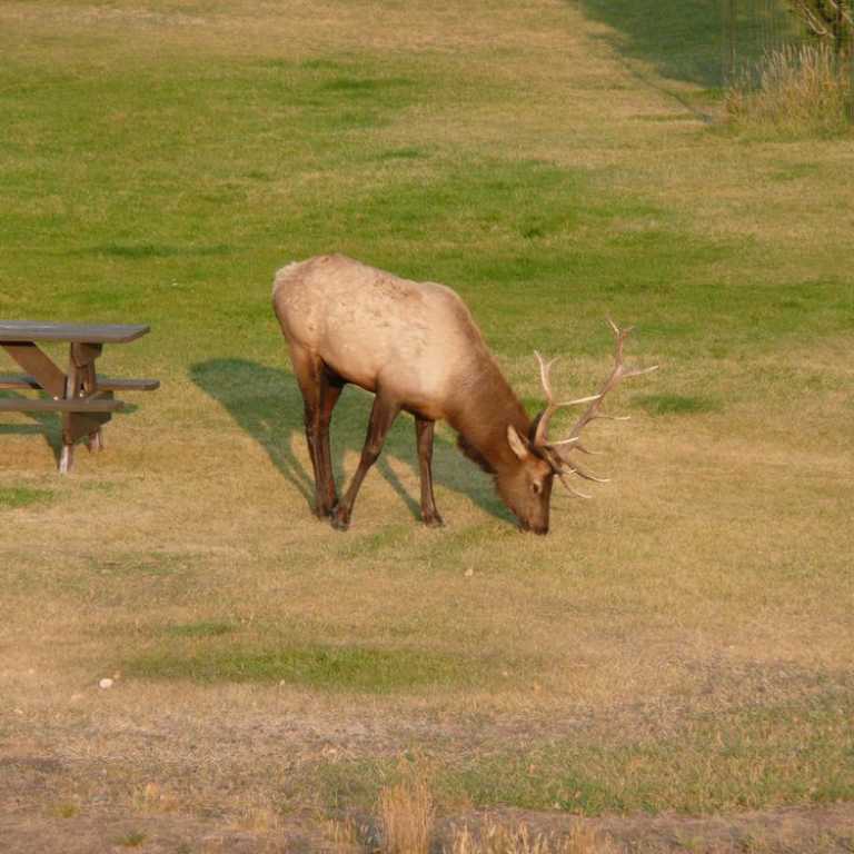 Nach einem leckeren Eis war die Zeit schon etwas fortgeschritten und wir mussten den Park in Richtung South Entrance verlassen. Als wir diesen erreichten war es auch schon 18 Uhr und wir fuhren gleich in den nächsten Nationalpark, den Grand Teton, einen kleineren, aber nicht minder schönen Park. Er diente uns aber nur zur Durchfahrt. Die verschiedenen Lodges waren unbezahlbar und somit mussten wir auch noch durch Grand Teton hindurch. Immer wieder sahen wir Büffel, Elche, Hirschen und Rehe. Am Jackson Lake konnten wir noch einen herrlichen Sonnenuntergang genießen.