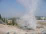 Im Besucherzentrum erkundigten wir uns zuerst nach dem nächsten Ausbruch, bevor wir uns ein Sandwich kauften. Um den bekannten Geysir sammelten sich schon eine halbe Stunde vor dem Ausbruch unzählige Besucher. Wir warteten gespannt auf die 55 m hohe Fontäne. Zuerst blubberte es und dann kam die beeindruckende Fontäne, die auf vielen Fotos festgehalten wurde. Danach wanderten wir zum Geyser Hill, wo wir viele kleine Geysire, viele Pools und blubbernde Becken vorfanden.