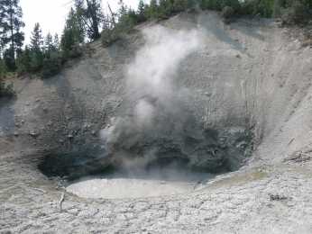 Weiter im Süden fanden wir den Mud Vulcano, eine besondere thermale Spezialität. Hier brodelt eine Suppe aus Matsch, Regenwasser und geschmolzenem Schnee. Am schönsten blubbert es im übelriechenden Dragons Caldron.