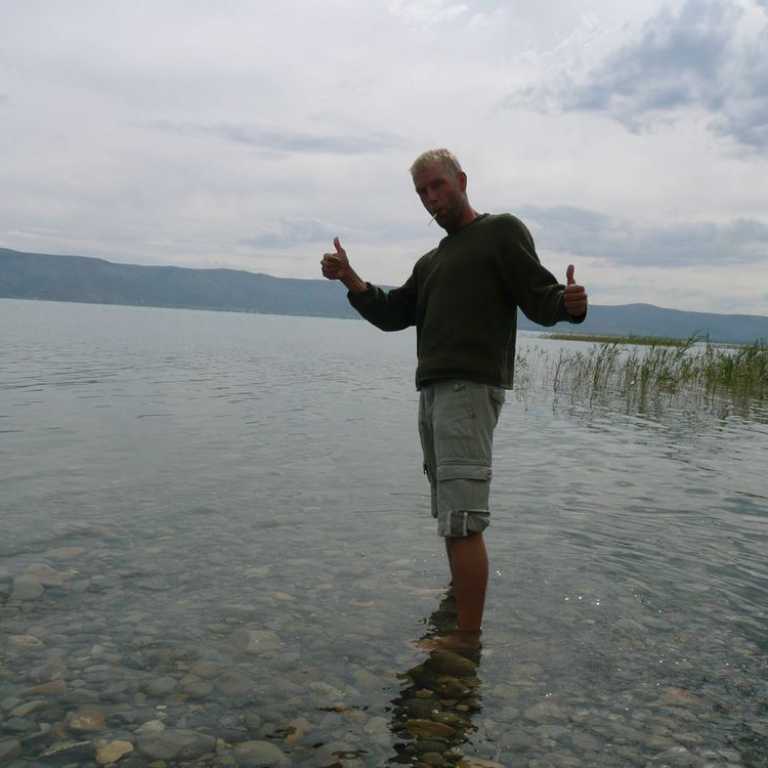 Danach gingen wir an den Strand. Über einen breiten, aber steinharten Sandstrand gelangten wir bis ans Wasser. Am Ufer und in den ersten Metern im Wasser tummelten sich Milliarden Fliegen, aber nach ein paar Metern waren diese weg. Da das Wasser sehr seicht war, musste ich weit ins Wasser gehen, damit ich mich auch hineinlegen konnte. Tatsächlich konnte man nicht untergehen. Dank des hohen Salzgehaltes schwimmt man, ohne sich zu bewegen, auf dem Wasser. Ein Büffel besuchte uns auch noch am Strand und bot ein ungewöhnliches Bild.