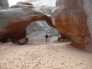 Wir fuhren weiter zum Sand Dune Arche, den wir ebenfalls wieder über einen Trail erreichten. Es machte viel Spaß in dieser bizarren Landschaft über Stock und Stein zu wandern. Über viel Sand kamen wir in einer Schlucht zum Sand Dune Arch. Auch dieser zeigte uns seine spektakuläre Seite. Wir fuhren dann bis ans Ende des Parks und starteten zu einem 4 km Trail. Hier fanden wir wieder bei super Lichtverhältnissen und reizvoller Strecke den Landscape Arch. Auch hier machten wir wieder unzählige Fotos. Auf dem Rückweg zum Auto besuchten wir noch den Pine Tree Arch und den Tunnel Arch. Ein Regenbogen begrüßte uns über den bizarren Felsformationen.