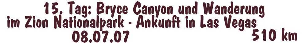 Nach unserer einstündigen Wanderung im Bryce Canyon fuhren wir zum Rainbow Point, wo wir auch wieder ein herrliche Aussicht über den riesigen Canyon hatten. Da es mittlerweile schon fast Mittag war, verließen wir wieder den Bryce Canyon und fuhren zurück auf den Highway Nummer 15, wo es weiter nach Süden ging. >>> Fotoalbum "Bryce Canyon"