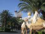 Wir besuchten dann später das Circus Circus. Der Adventuredome ist ein direkt an das Circus Circus Hotel angebauter Indoorfreizeitpark auf dem Las Vegas Strip. Der Adventuredome wurde 1993 auf der Fläche des ehemaligen Westparkplatzes eröffnet. Der Dome selbst besteht aus einer Fläche von rund 33.000 m2 und pink eingefärbtem Isolationsglas. Jedes einzelne Glaspanel wiegt ca. 140 kg. In dem Park sind 25 Attraktionen bzw. Fahrgeschäfte installiert. Wir fuhren mit der Achterbahn und der Wasserrutsche. Am Abend gingen wir nach dem Essen ins Venetian Casino. Dort spielten wir Roulett und dann pokerten wir. Leider verloren wir unser selbst gestecktes Limit, so das wir uns entschlossen unser restliches Geld an der Hotelbar auszugeben, was uns auch gelang. Erst als es schon hell wurde legten wir uns schlafen.