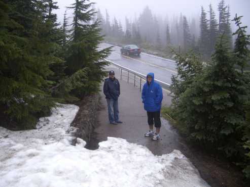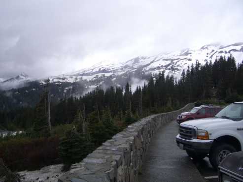 Wir fuhren wieder die gleiche Strecke zurück bis zur Hauptstraße. Von hier ging es weiter nach Norden zum Mount Rainier Nationalpark. In Paradise war ein Besucherzentrum, wo wir ein paar Meter im Schnee gingen. Leider war auch der Mount Rainier in Wolken. Er ist ein Schichtvulkan und Zentrum des Mount-Rainier-Nationalparks 87 km südöstlich von Seattle in Pierce County, US-Bundesstaat Washington. Mit 4.395 Metern ist er der höchste Gipfel der Kaskadenkette.