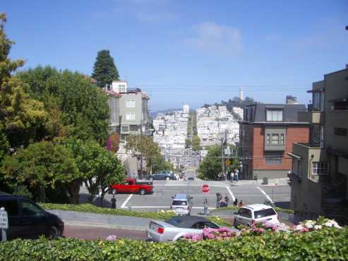 Zuerst fuhren wir 3 Mal mit dem Auto die schiefste Straße der Welt hinunter. Die Lombard Street. Lenker ließ sich dies nicht nehmen, da es ziemlich viel Spaß machte. Dann fuhren wir nach Westen zur Golden Gate Bridge. Leider war sie etwas im Nebel. Wir machten Fotos und fuhren dann weiter.