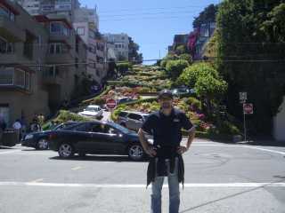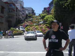 So steil ist sie und zudem mit Ziegelsteinen gepflastert. In atemberaubenden Kurven überwindet sie das Gefälle des Russian Hill. Über die Treppen an der Seite erklommen wir die Lombard Street die über und über mit Blumen beflanzt war. Am nächsten Tag ging es auch noch 3 mal mit dem Auto hinunter weil es dem Lenker so viel Spaß machte, die engen Kurven hinunter zu "sausen". Am oberen Ende der Lombard Street fährt die Cable Car.