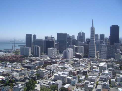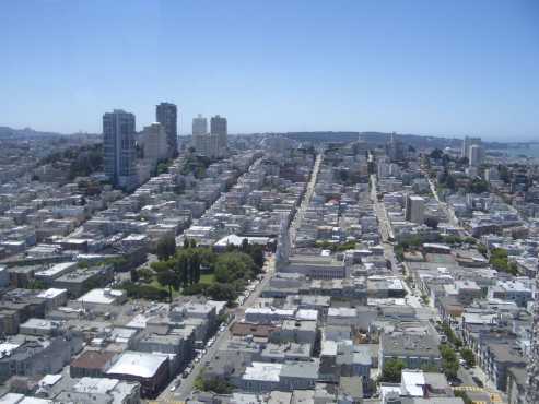 Wir gingen los Richtung Süden bis wir die Montgomey Street erreichten. Von dort führten uns Treppen steil auf den 74 m hohen Telegraph Hill, auf dem der Coit Tower (63 m hoch) steht. Wir kamen an blumenbewachsenen Gärten vorbei, immer mit herrlicher Sicht auf die Piers. Mit einem Aufzug kommt man zur Spitze des Towers. Von hier konnten wir die gesamte Stadt überblicken. Die Aussicht war grandios. Der Coit Tower, ein Aussichtsturm in San Francisco, wurde von Arthur Brown Jr. und Henry Howard 1934 erbaut. Lillie Hitchcock Coit, ein Kind der High Society, war eine große Verehrerin der tapferen Feuerwehrleute von San Francisco.