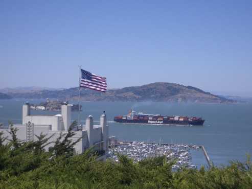Nach dieser interessanten Führung genossen wir noch kurz den herrlichen Blick auf San Francisco. Mit dem Schiff konnte man alle halbe Stunde wieder zurück auf das Festland fahren. Kurz nach Mittag kamen wir am Pier 41 an. Sofort machten wir uns wieder auf dem Weg in Richtung Coit Tower.