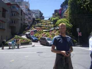 Nachdem wir den Coit Tower wieder verlassen hatten, gingen wir nach Westen auf der Lombard Street. Nach ca. 1/2 Stunde Fußmarsch erreichten wir "The crookedest street in the world" - die krummste Straße der Welt darf nur abwärts befahren werden.